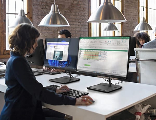 Vous avez beaucoup de travail, mais pas beaucoup de place sur votre bureau ? Vous en avez assez des câbles qui traînent partout ? Le ThinkCentre Neo 30a Gen 4 est la solution ! De taille moyenne, il dispose d’un écran Full HD de 60,45 cm (23,8") qui vous offre des visuels nets et éclatants ainsi qu’un espace d’affichage suffisamment grand pour travailler en toute efficacité. Grâce à sa conception tout-en-un, vous pouvez libérer de l’espace sur votre bureau et dire adieu aux câbles enchevêtrés. Ce minimalisme tant apprécié des utilisateurs se manifeste jusque dans l’emballage, composé à 65 % de matériaux recyclés après utilisation et de plastiques récupérés dans les océans.