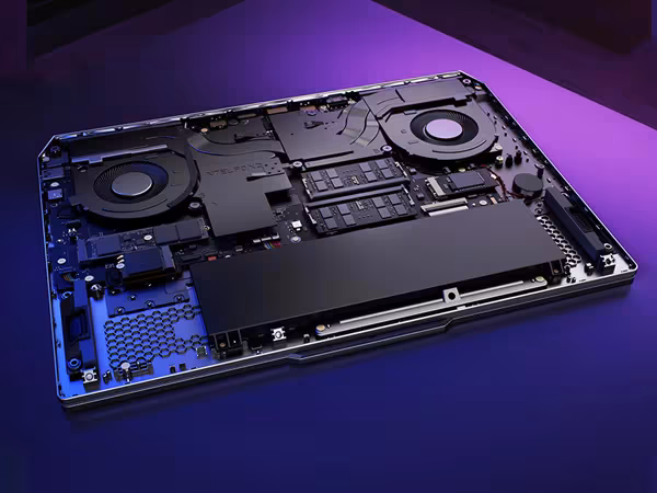 La conception thermique à hyperchambre du Lenovo LOQ 15IRX9 change la donne. Une hyperchambre scellée, avec deux ventilateurs tournant dans des directions opposées, guide l’air frais en se déplaçant à l’intérieur de la chambre. Cela empêche l’air chaud de s’infiltrer dans le reste du châssis et expulse efficacement la chaleur par l’arrière. Ainsi, l’enveloppe thermique (TDP) maximale peut atteindre 160 W. Cette conception réduit non seulement la température de surface et le bruit, mais assure également une expérience de gaming ininterrompue, que ce soit dans le cadre d’une session de jeu épique ou dans le silence d’une bibliothèque.