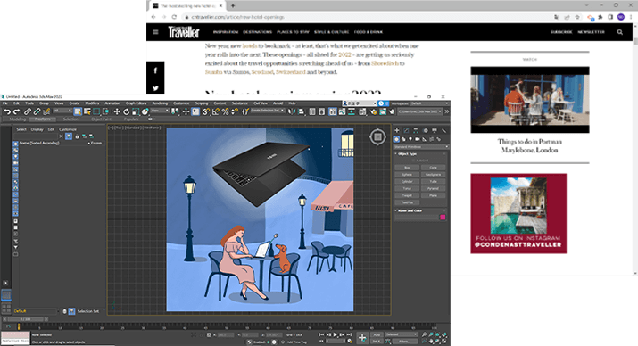 Nous avons choisi de collaborer avec Lorraine pour la création de visuels colorés dédiés à la série Modern et reprenant les thèmes de l'amour, du travail et des voyages. L'ordinateur portable devient une véritable fenêtre vouée à aider les utilisateurs à réaliser leurs rêves avec style. Choisissez votre visuel préféré et entrez dans une nouvelle étape de votre vie avec la série Modern !